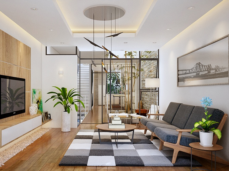 Trừ khu vực nhà vệ sinh và nhà tắm dùng tường xây để đảm bảo chống thấm tốt, tất cả bức tường ngăn ở các khu vực trong nhà đều là các tủ gỗ không chạm trần, tạo cảm giác về một không gian chảy liên tục, không bị ngắt quãng.